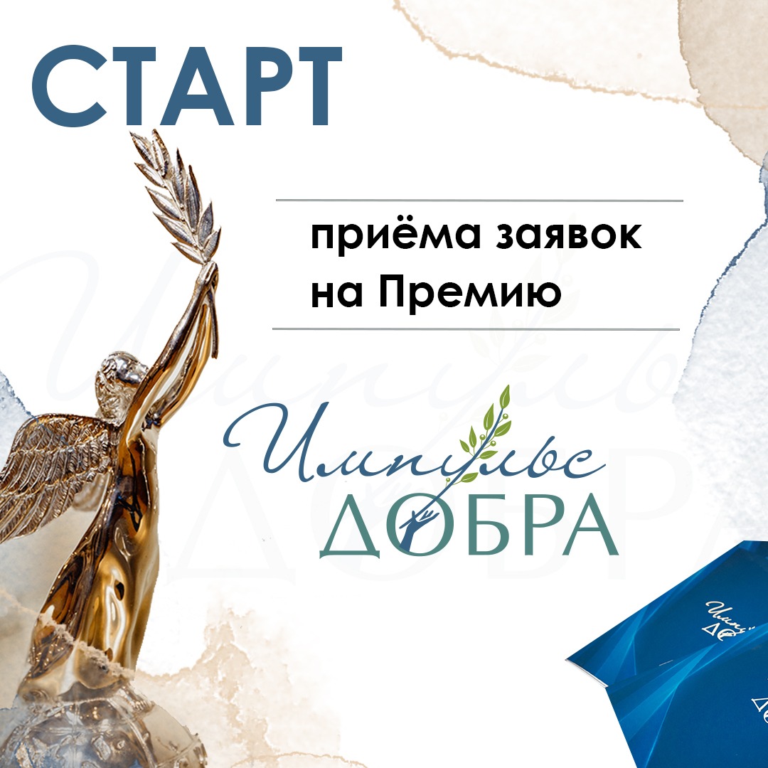 Ежегодная Премия «Импульс добра», учрежденная Фондом региональных социальных программ «Наше будущее», в этом году будет вручаться в 12-й раз. Заявки принимаются до 14 апреля 2023 года на сайте https://contest.nb-fund.ru/contest/id2023/.